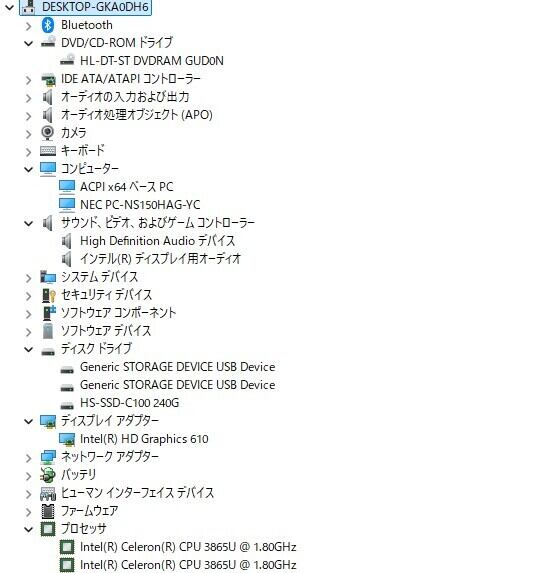 ・CPU:Intel Celeron 3865U 1.80GHz(1.80GHz)
