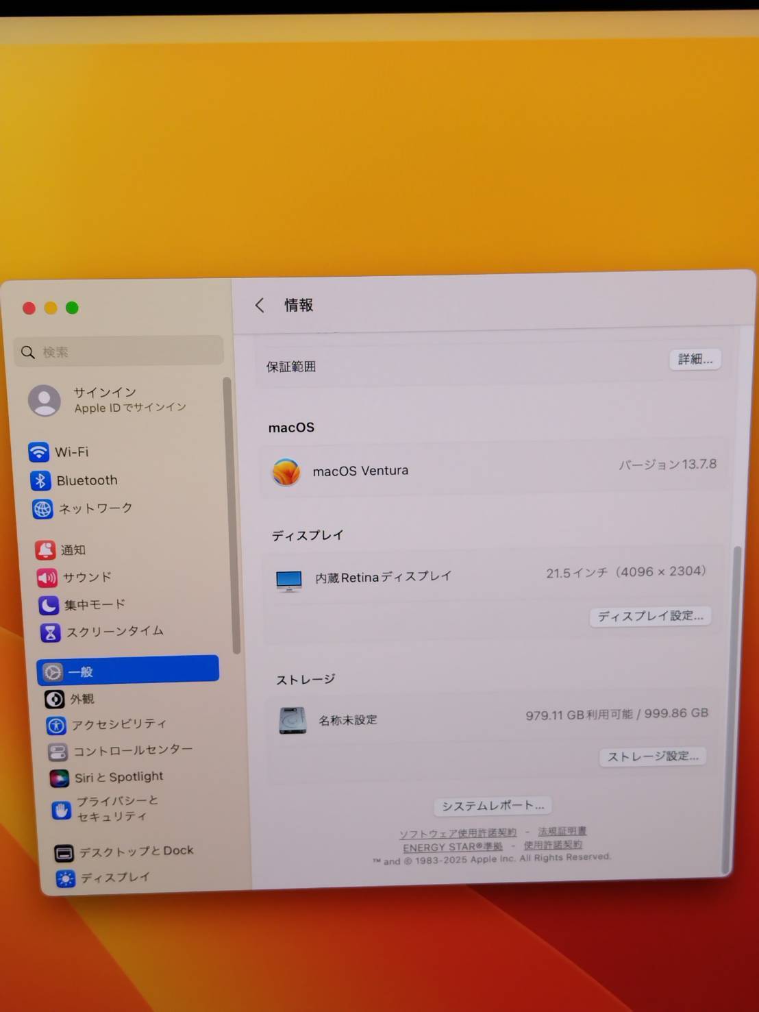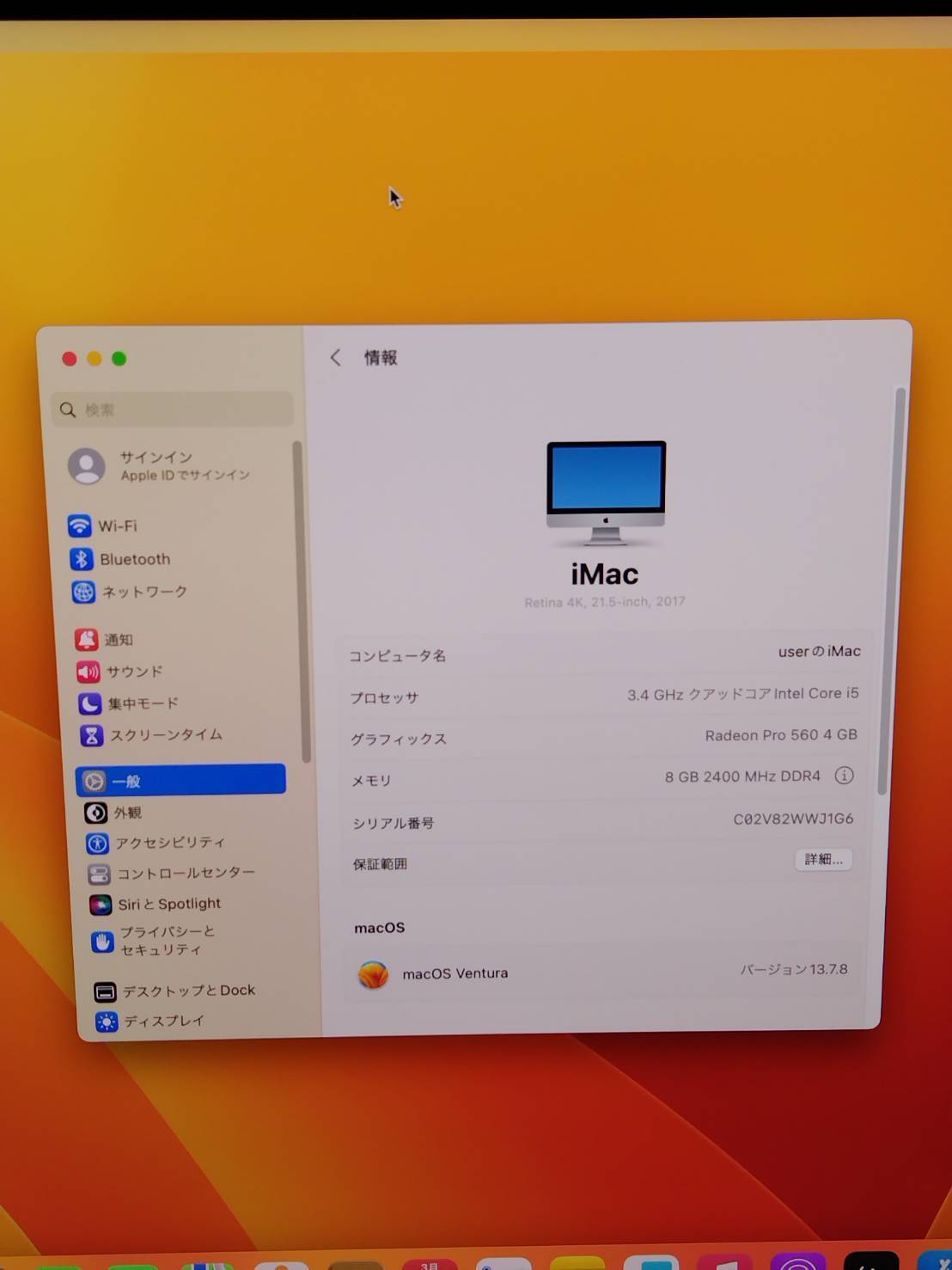 ・ディスプレイ:21.5インチ 4K Retina ディスプレイ(4,096 x 2,304)