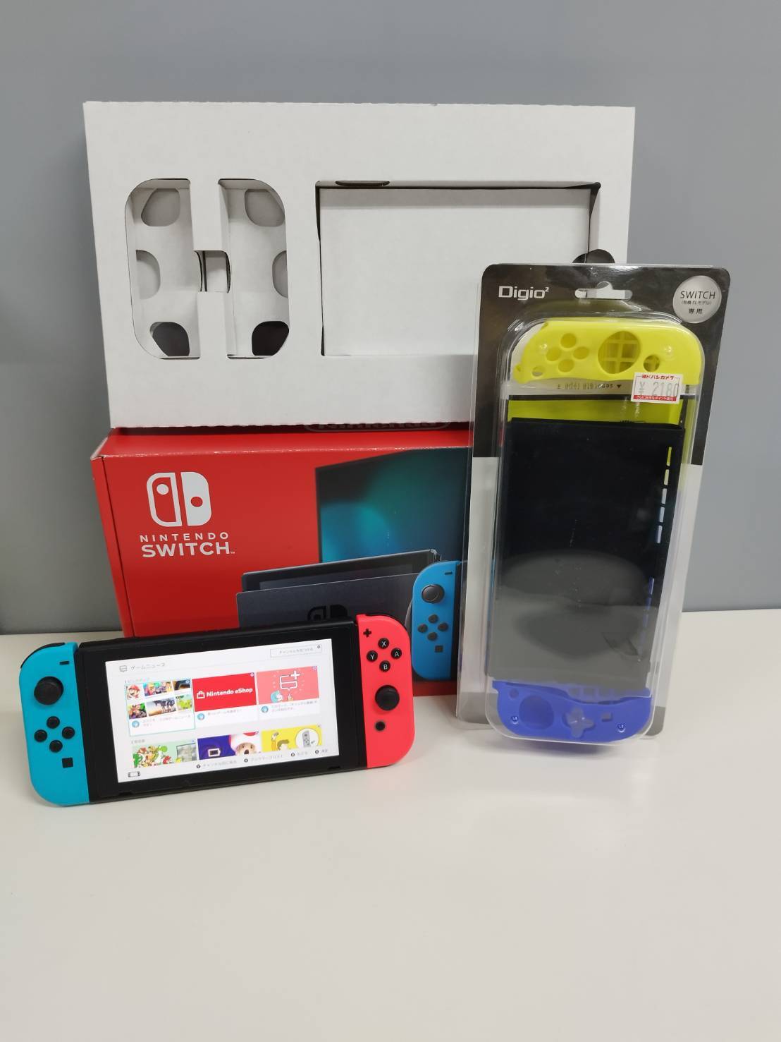 ジョイコン使用感少なく、その他付属品多数未使用状態です。液晶には保護フィルムが貼ってあります。