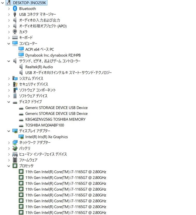 ・CPU:Intel Core i7-1165G7 2.80GHz(2.80GHz)