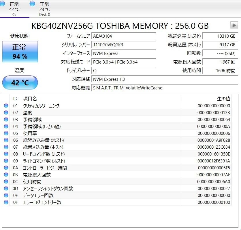 ・ストレージ:SSD 256GB + HDD 1TB