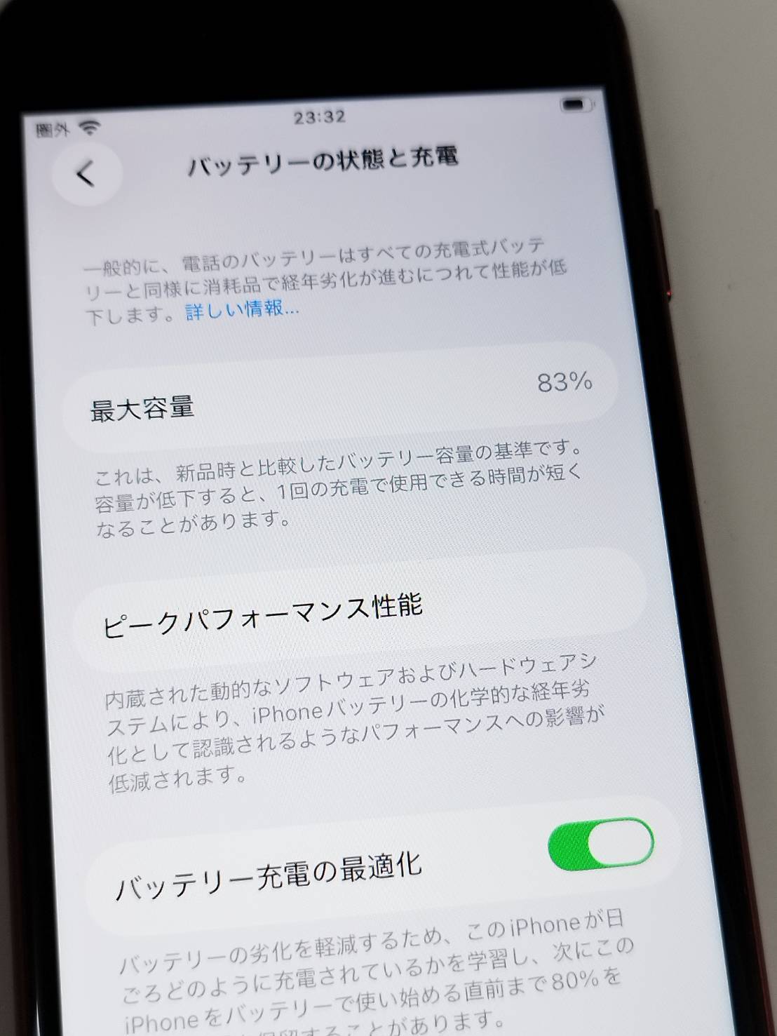 バッテリー最大容量83%です。初期化・動作確認済み。