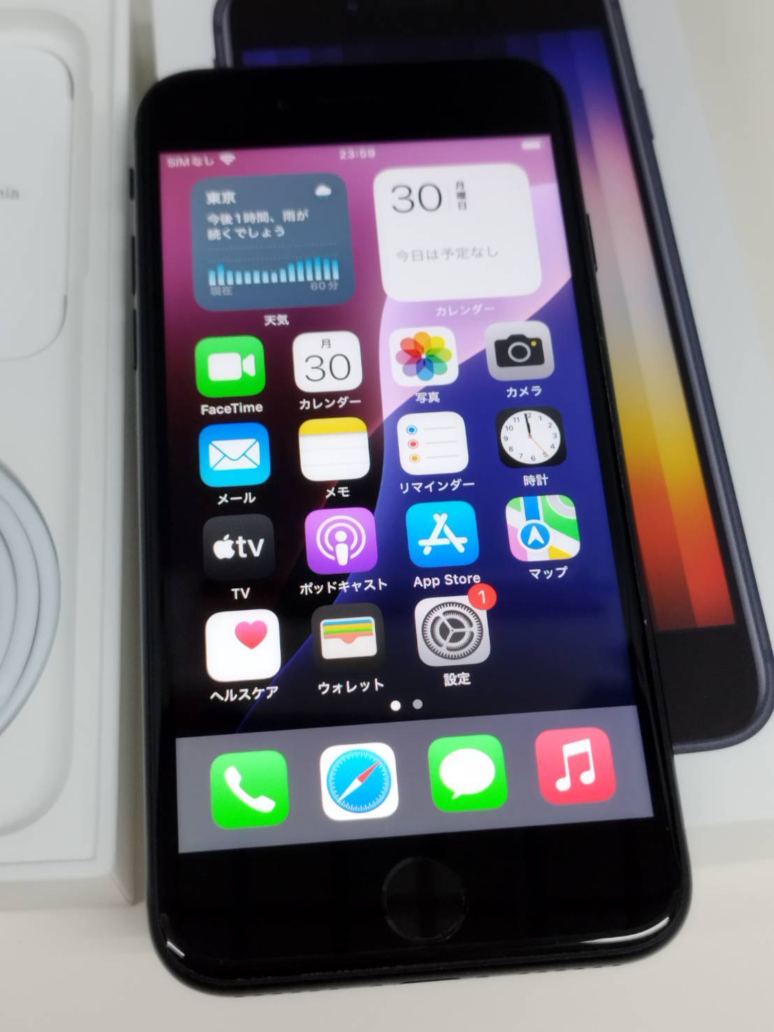 本体、Lightning to Type-Cケーブル、印刷物、SIMピン、外箱(画像1枚目に写っているも)
