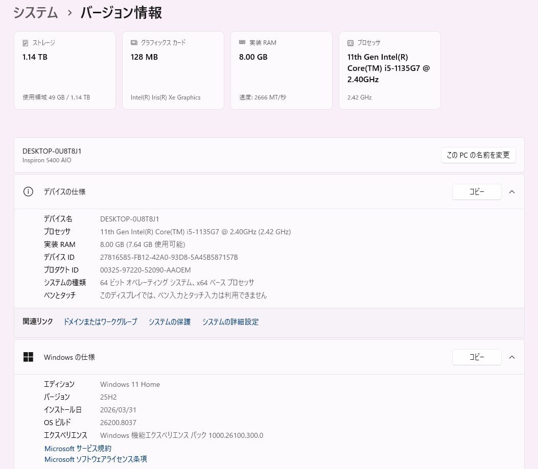 ・OS:Windows11 Home/25H2(ライセンス認証・Windows update済)