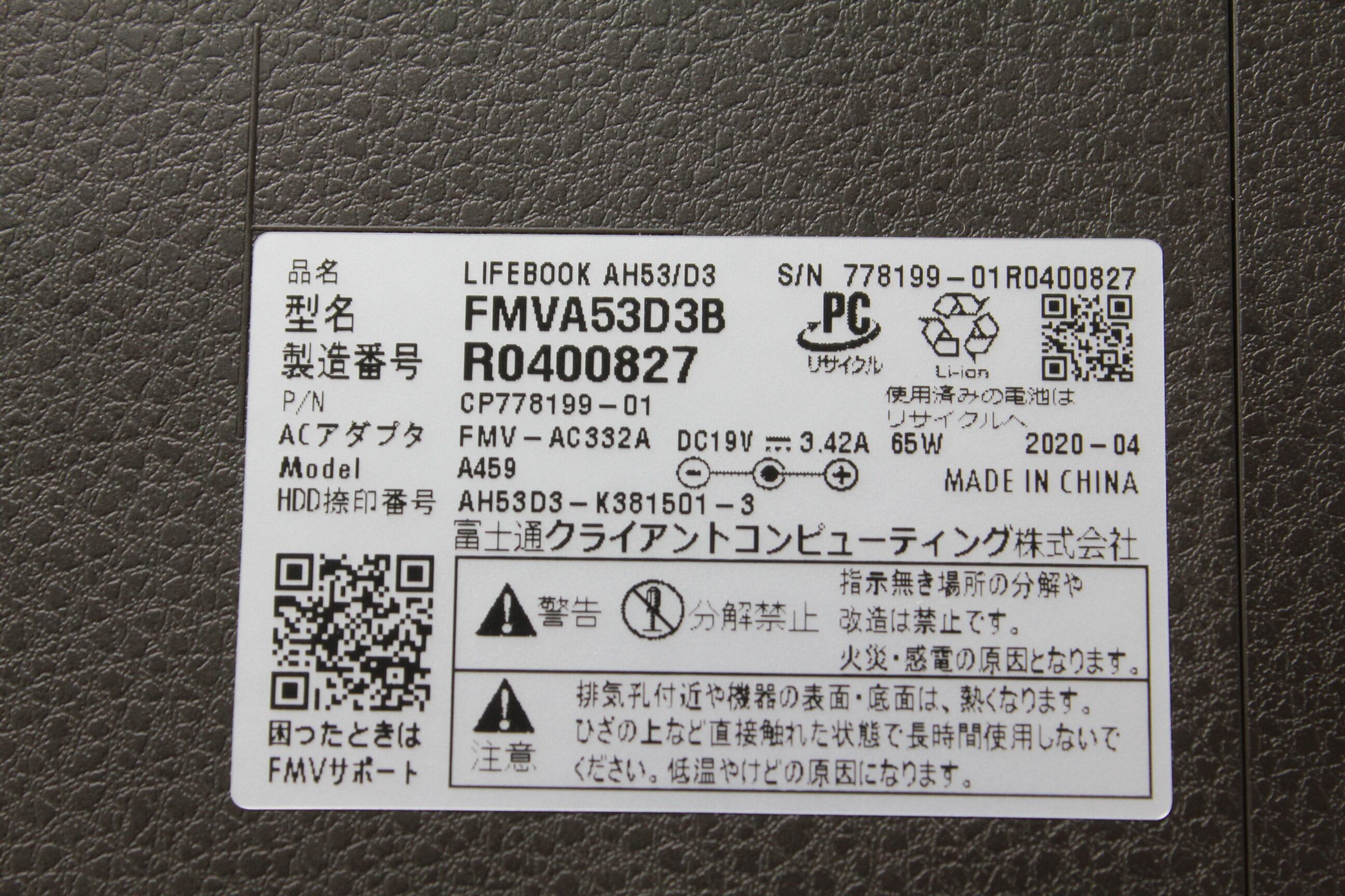 【中古ノートPC】富士通〈LIFEBOOK AH53/D3〉Intel Core i7/SSD512GB/メモリ8GB ⑥
