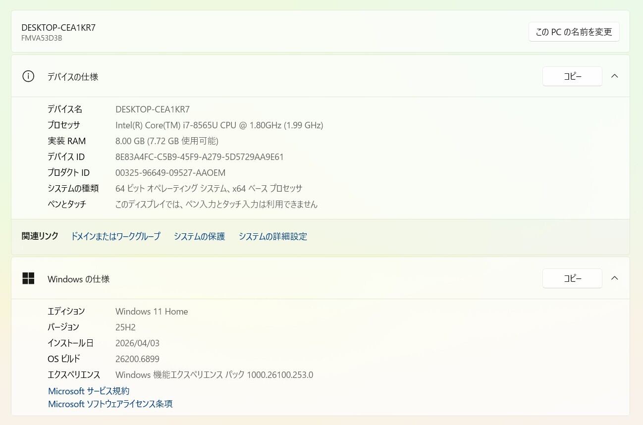 ・OS:Windows11 Home/25H2(ライセンス認証・Windows update済)