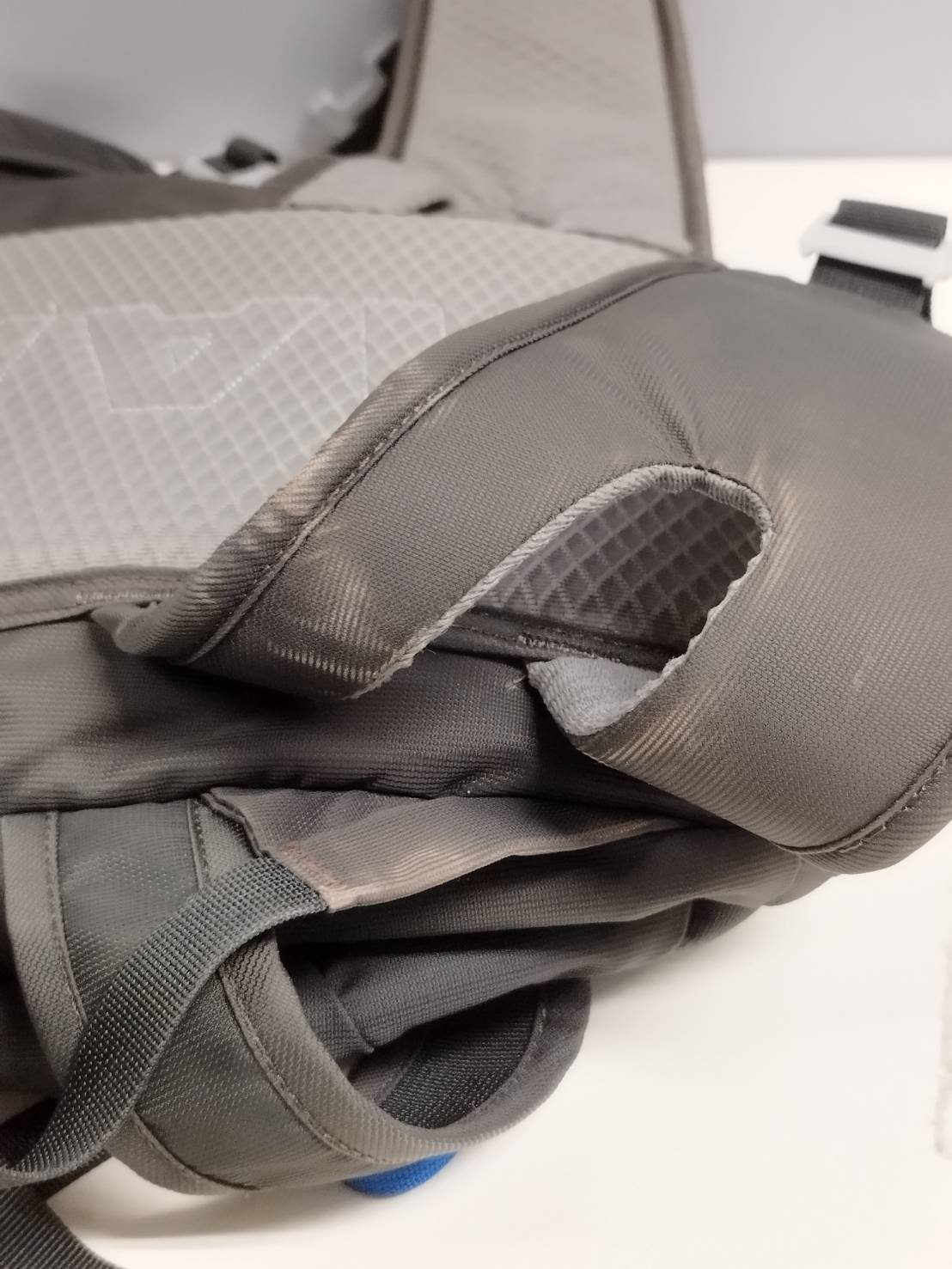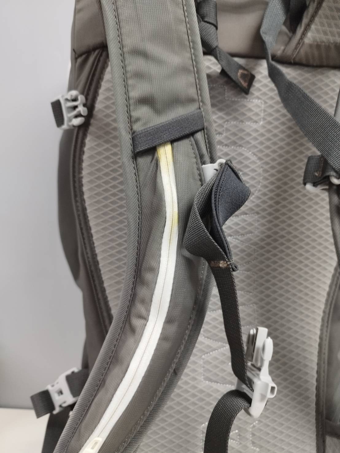 肩ひものファスナー部分とウエストベルトに汚れがあります。