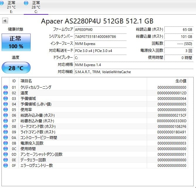 E:現状品(長時間の動作確認は行っていない・検査時の状態維持の保証が出来ない)