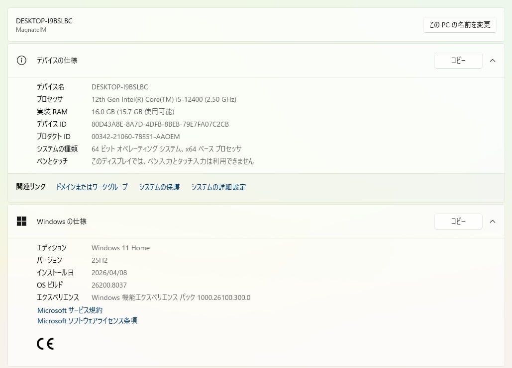 ・OS:Windows11 Home/25H2(ライセンス認証・Windows update済)