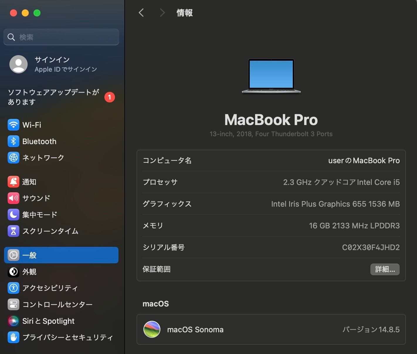 ・プロセッサ:2.3GHz クアッドコアIntel Core i5