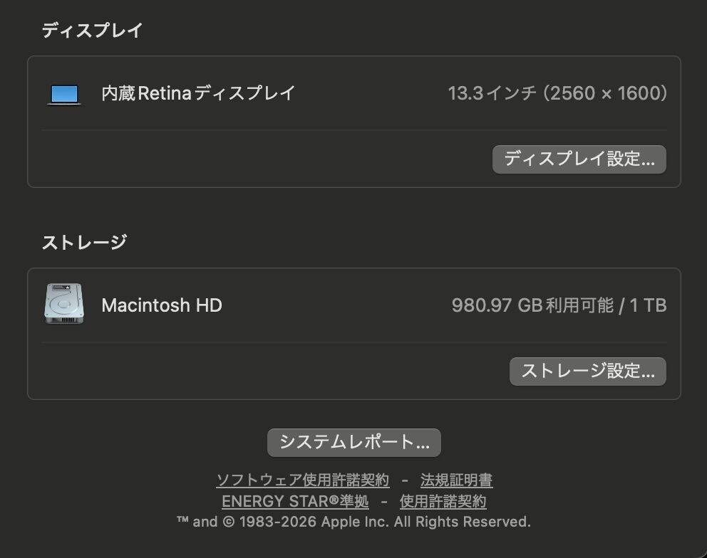 ・ディスプレイ:Retina 13.3インチディスプレイ(2,560 x 1,600)