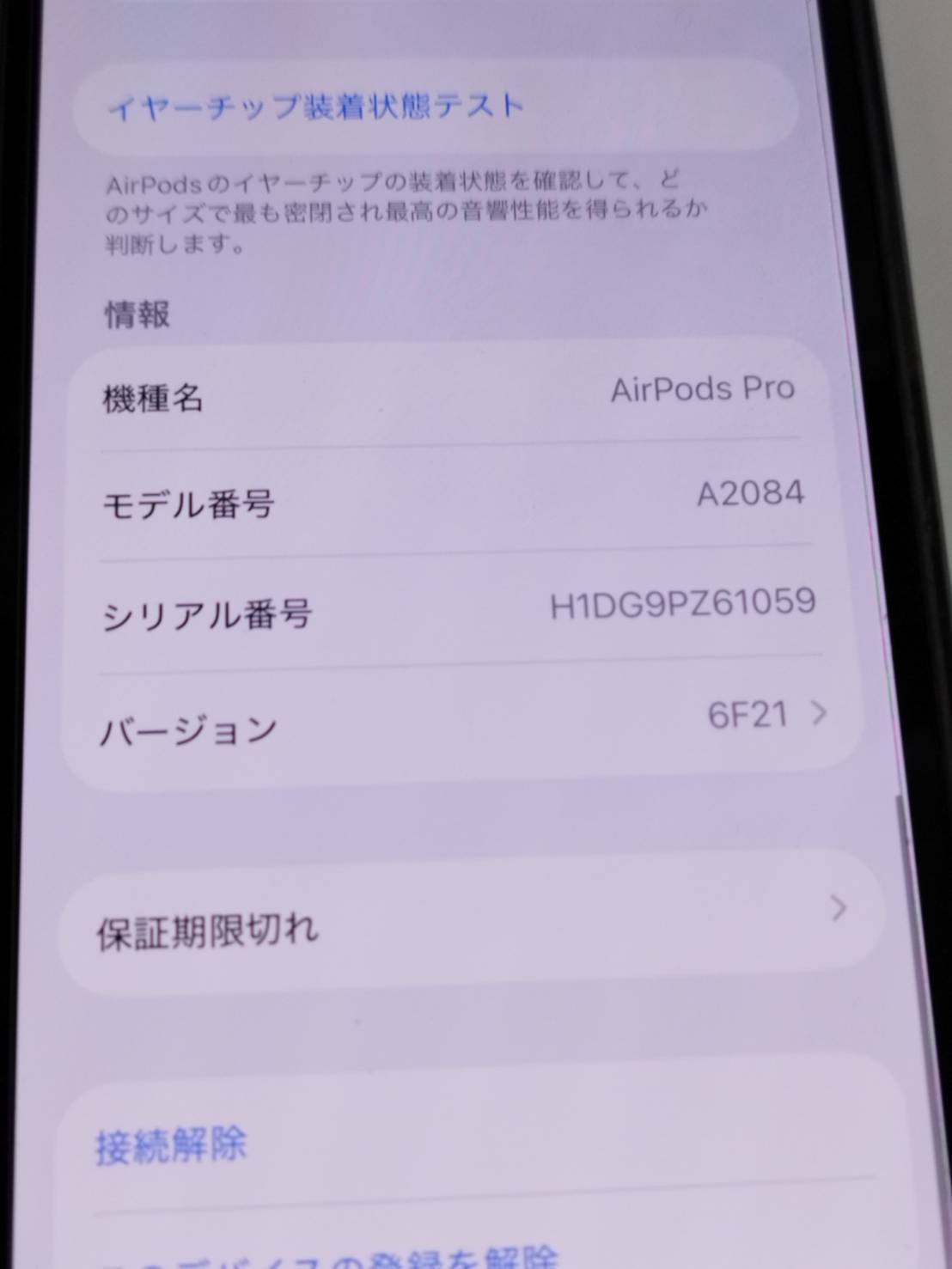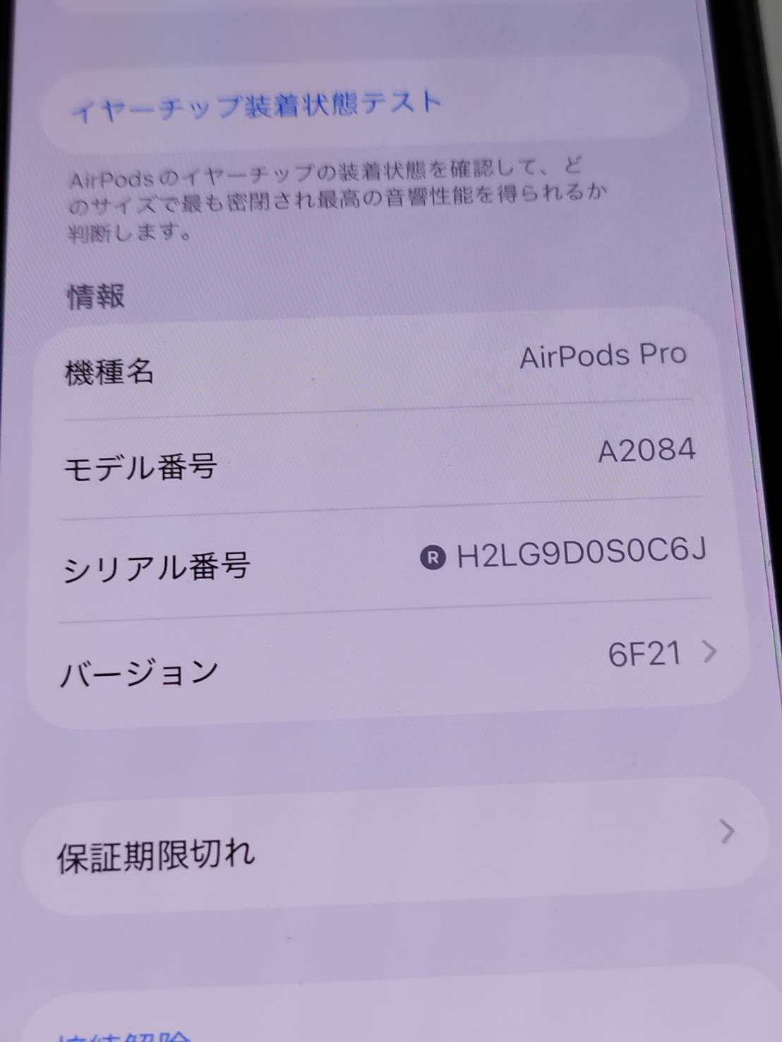 【美品】Apple AirPods Pro 第1世代/A2083,A2084,A2190/ワイヤレスイヤホン〈MLWK3J/A〉