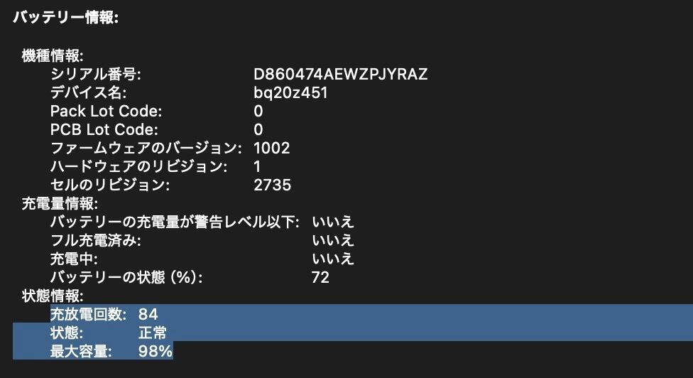 ・バッテリー状態:画像をご参考ください(※バッテリーは消耗品のため、保証致しかねます。またバッテリー状態はあくまで参考値のため、実際の稼働時間を保証するものではございません。)