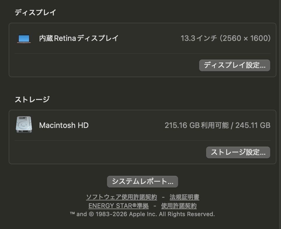 ・ディスプレイ:Retina 13.3インチ (2,560 x 1,600)