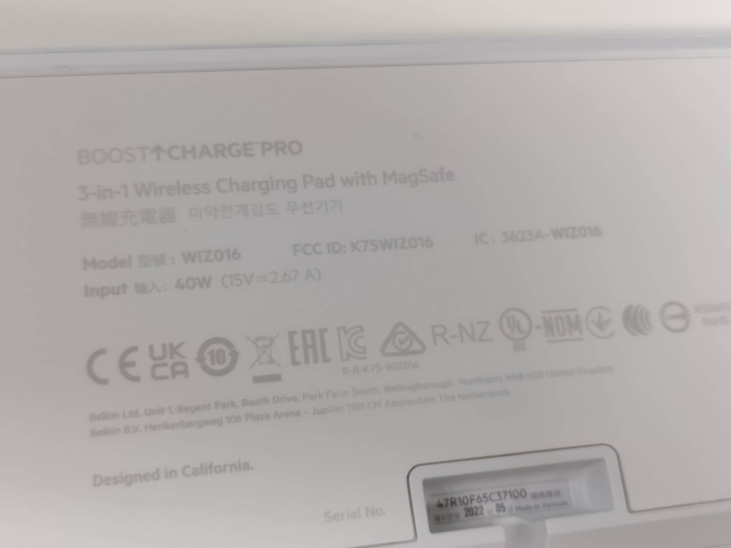 【良品】belkin 3in1 ワイヤレス充電器/WIZ016