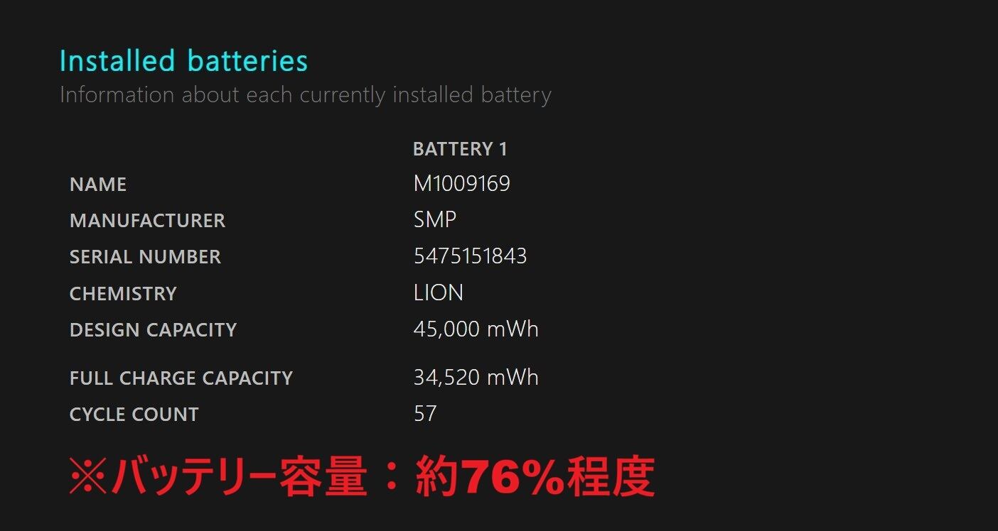 バッテリー状態:画像をご参考ください(※バッテリーは消耗品のため、保証致しかねます。またバッテリー状態はあくまで参考値のため、実際の稼働時間を保証するものではございません。)