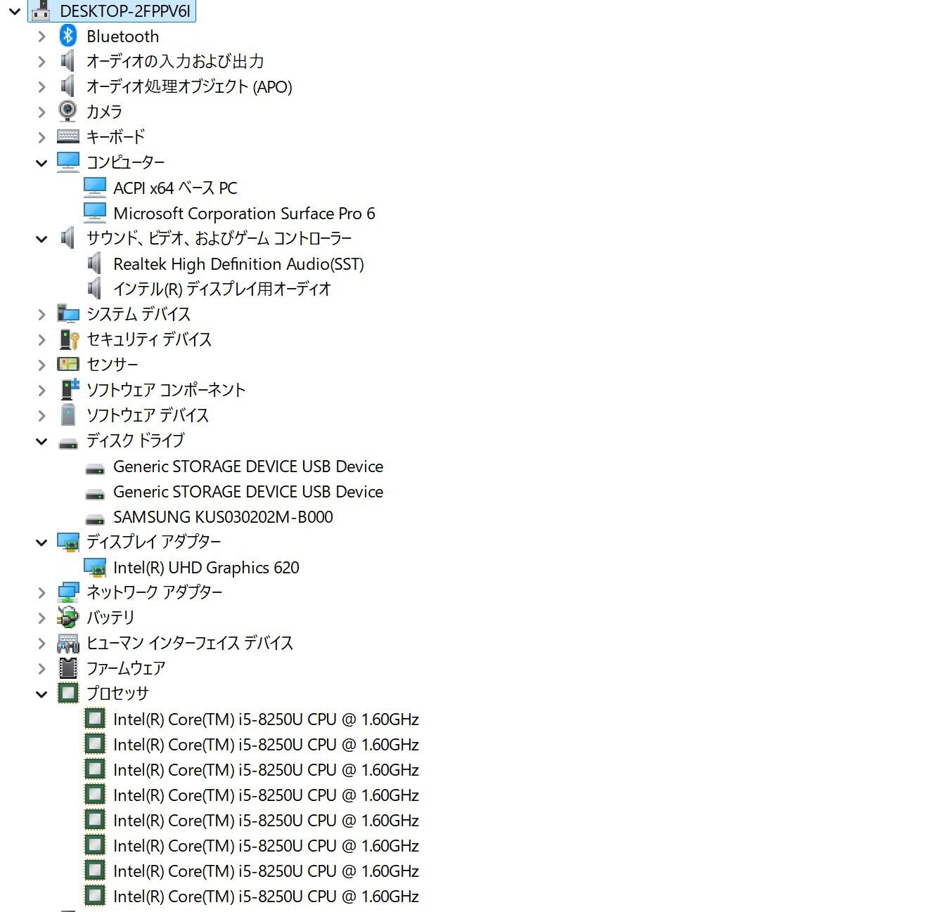 CPU:Intel Core i5-8250U 1.60GHz(1.80GHz)