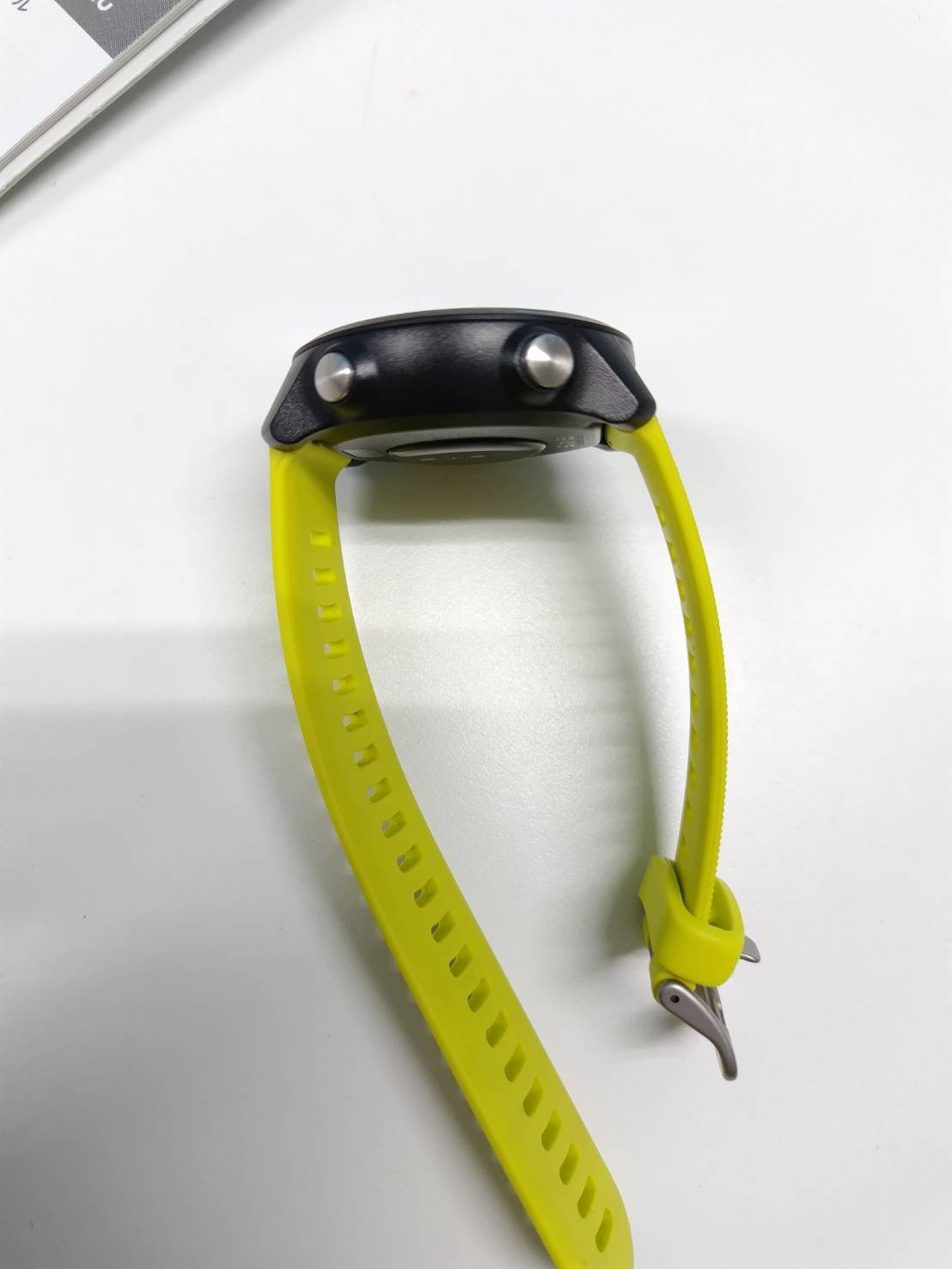 内容物:本体、バンド、充電ケーブル、印刷物(画像1枚目に写っているもの)