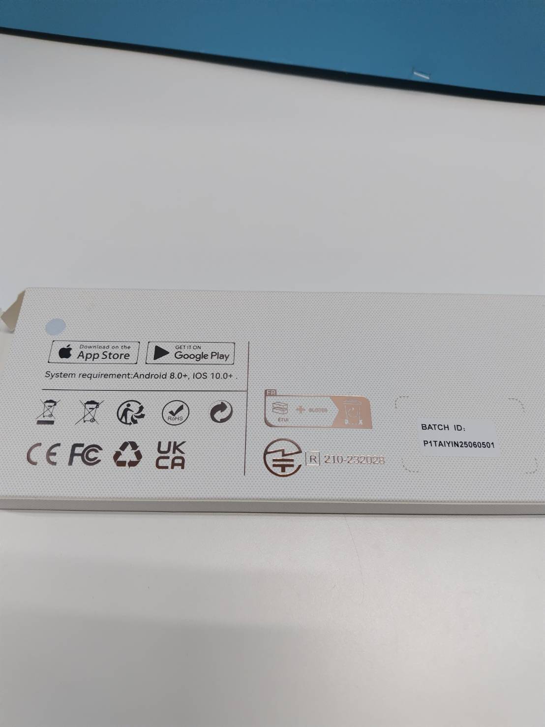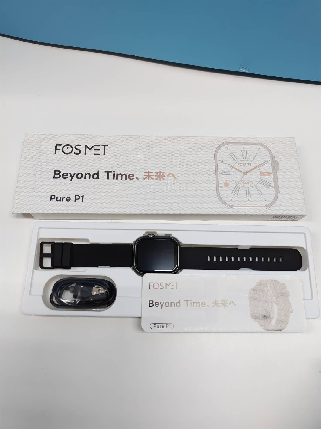 内容物:本体、バンド、充電ケーブル、印刷物(画像1枚目に写っているもの)
