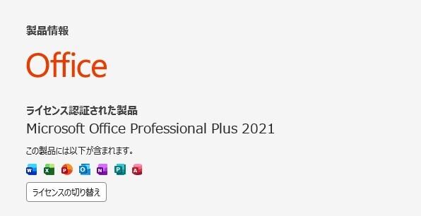 ・Office Professional Plus 2021 ライセンス認証済み(プロダクトキーなどは付属しません)