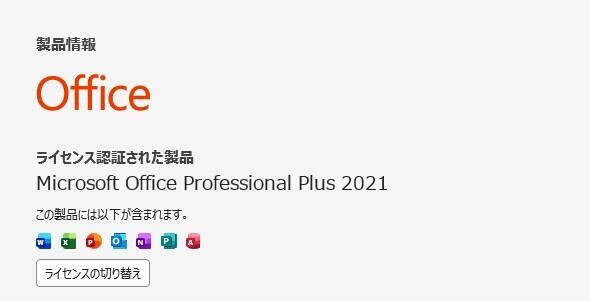 ・Office Professional Plus 2021 ライセンス認証済み(プロダクトキーなどは付属しません)