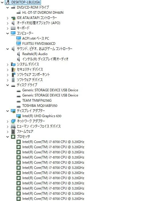 ・CPU:Intel Core i7-8700 3.20GHz(3.19GHz)