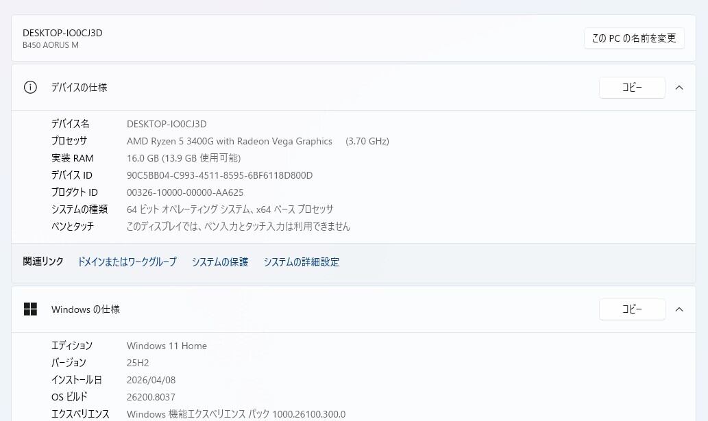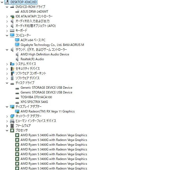 ・CPU:AMD Ryzen 5 3400G (3.70GHz)