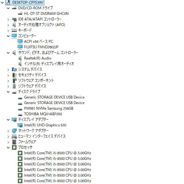 ・CPU:Intel Core i5-8500 3.00GHz(3.00GHz)