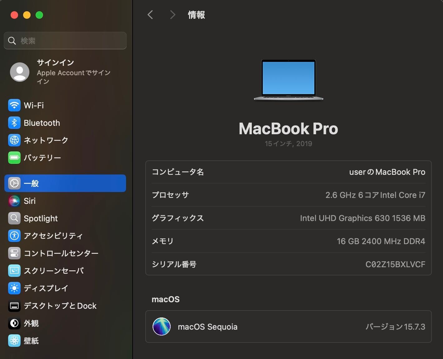 【現状品】MacBook Pro(15インチ,2019)256GB/16GB〈MV902J/A〉④