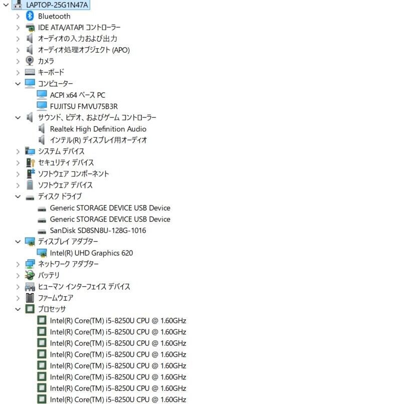 ・CPU:Intel Core i5-8250U 1.60GHz(1.80GHz)