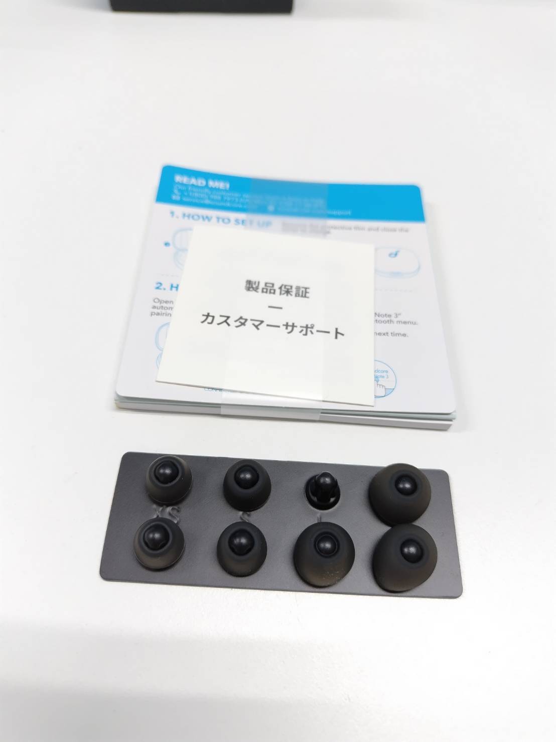 内容物:イヤホン、ケース、イヤーピース、印刷物(画像1枚目に写っているもの)