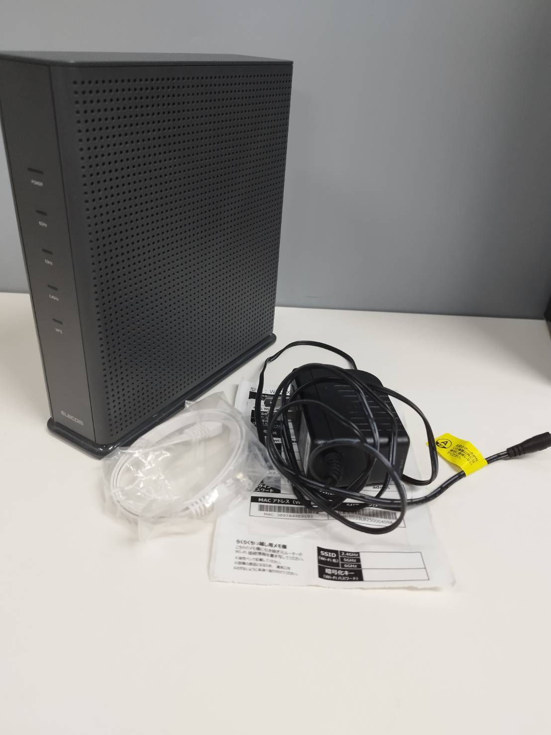 本体、ACアダプター、LANケーブル、かんたんセットアップシート(画像1枚目に写っているもの)