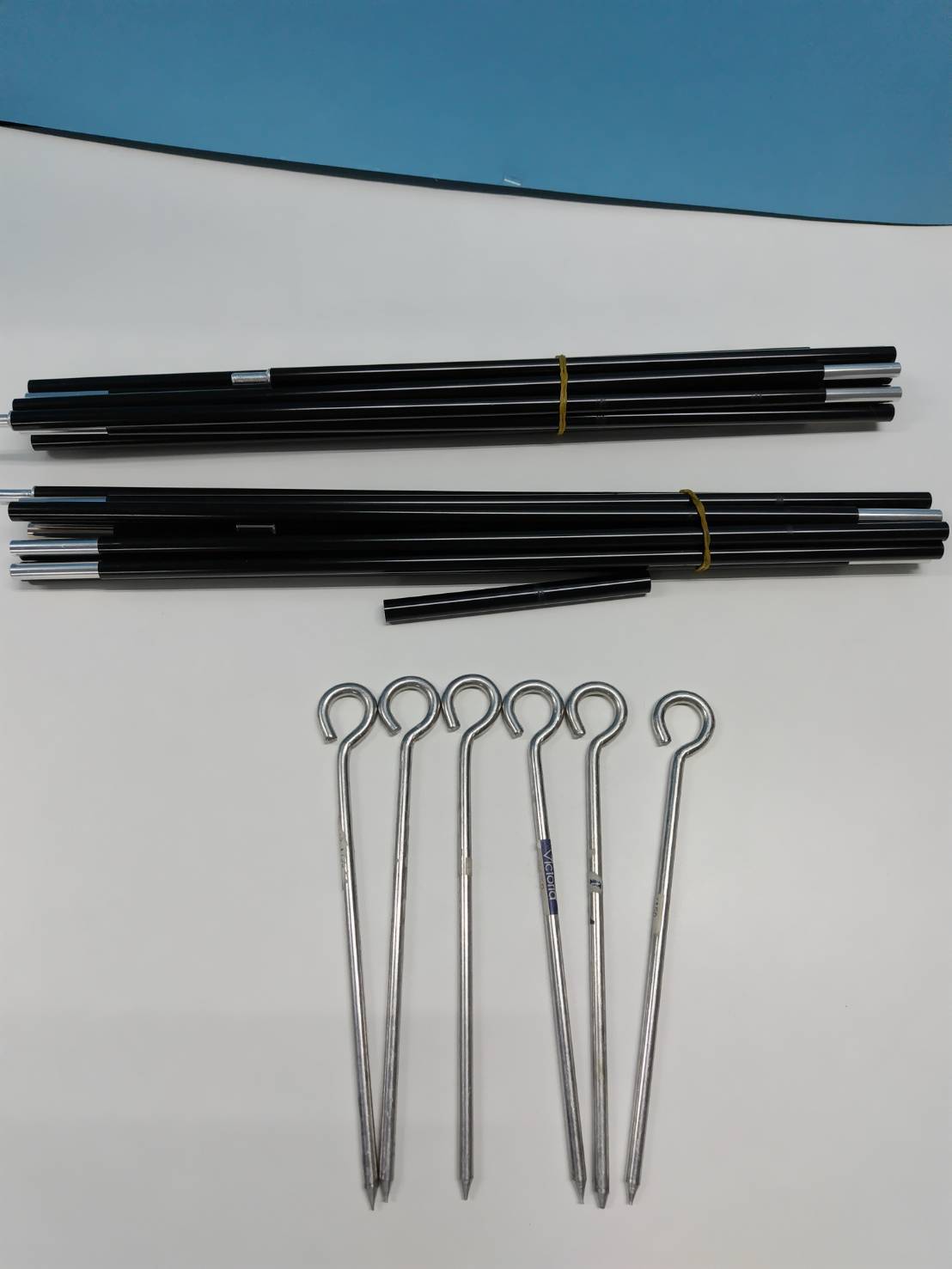 内容物:テント、ポール×2、ペグ×6、印刷物(画像1枚目に写っているもの)