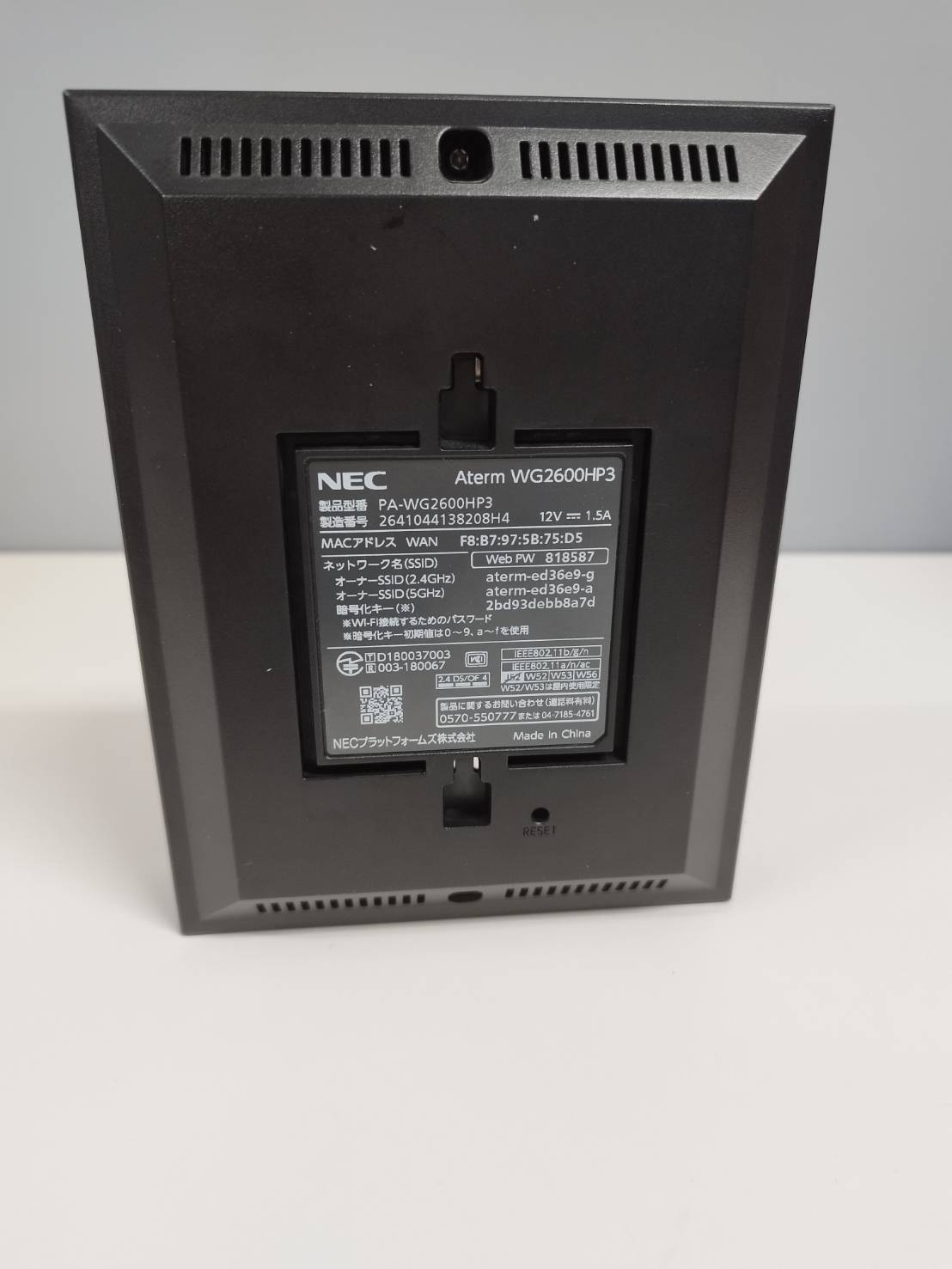 【良品】NEC Aterm WG2600HP3/無線LANルーター