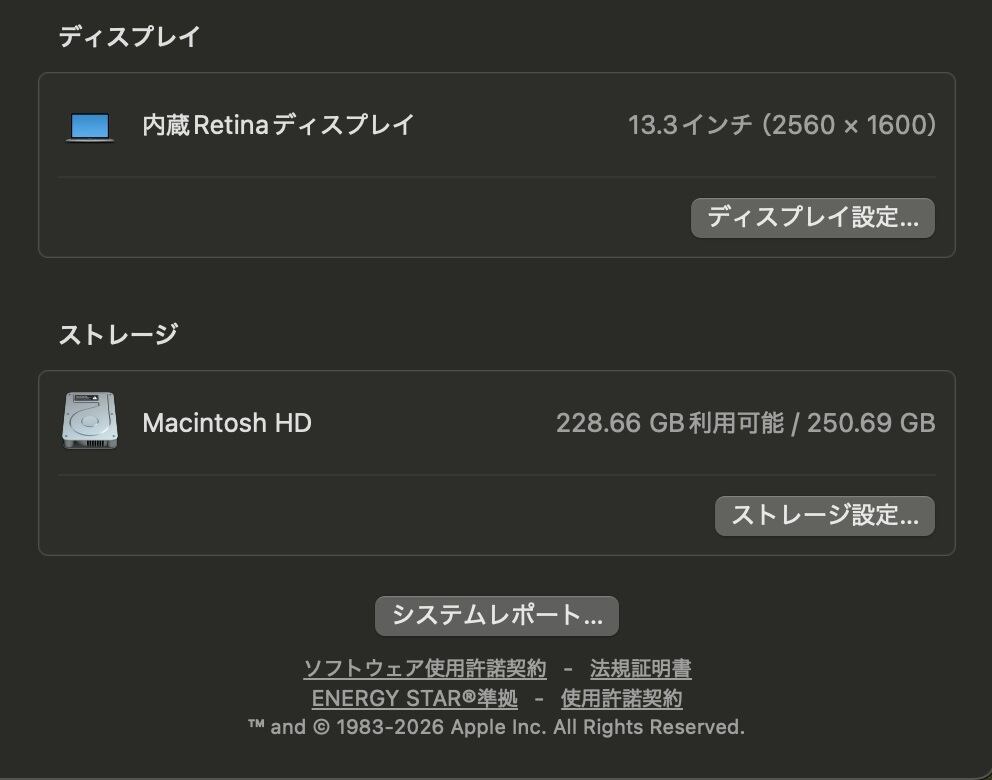 ・ディスプレイ:Retina 13.3インチ(2,560 x 1,600)