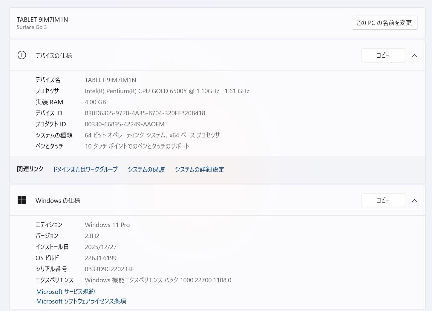 Surface Go3/Intel Pentium GOLD/64GB/4GB ⑥