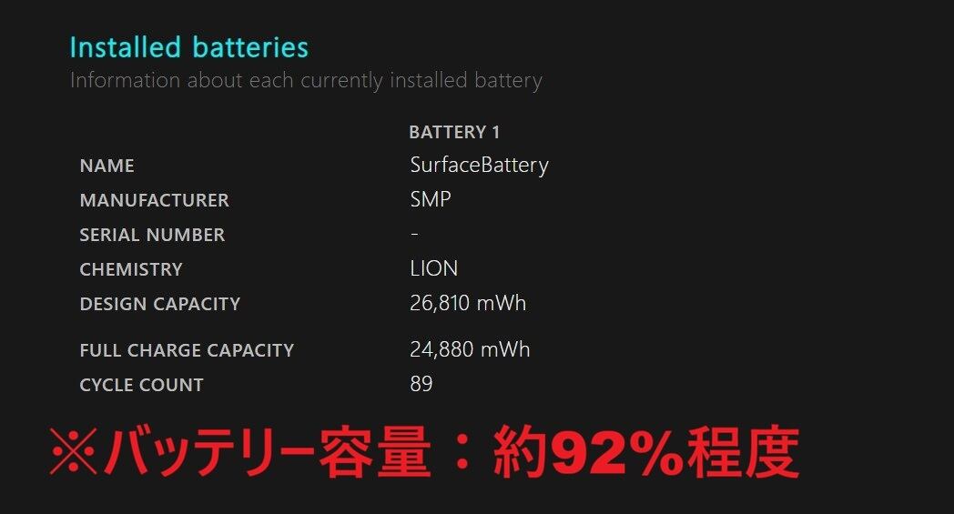 バッテリー状態:画像をご参考ください(※バッテリーは消耗品のため、保証致しかねます。またバッテリー状態はあくまで参考値のため、実際の稼働時間を保証するものではございません。)