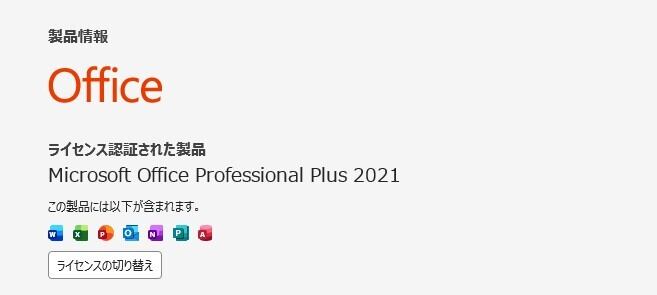 ・Office Professional Plus 2021 ライセンス認証済み(プロダクトキーなどは付属しません)