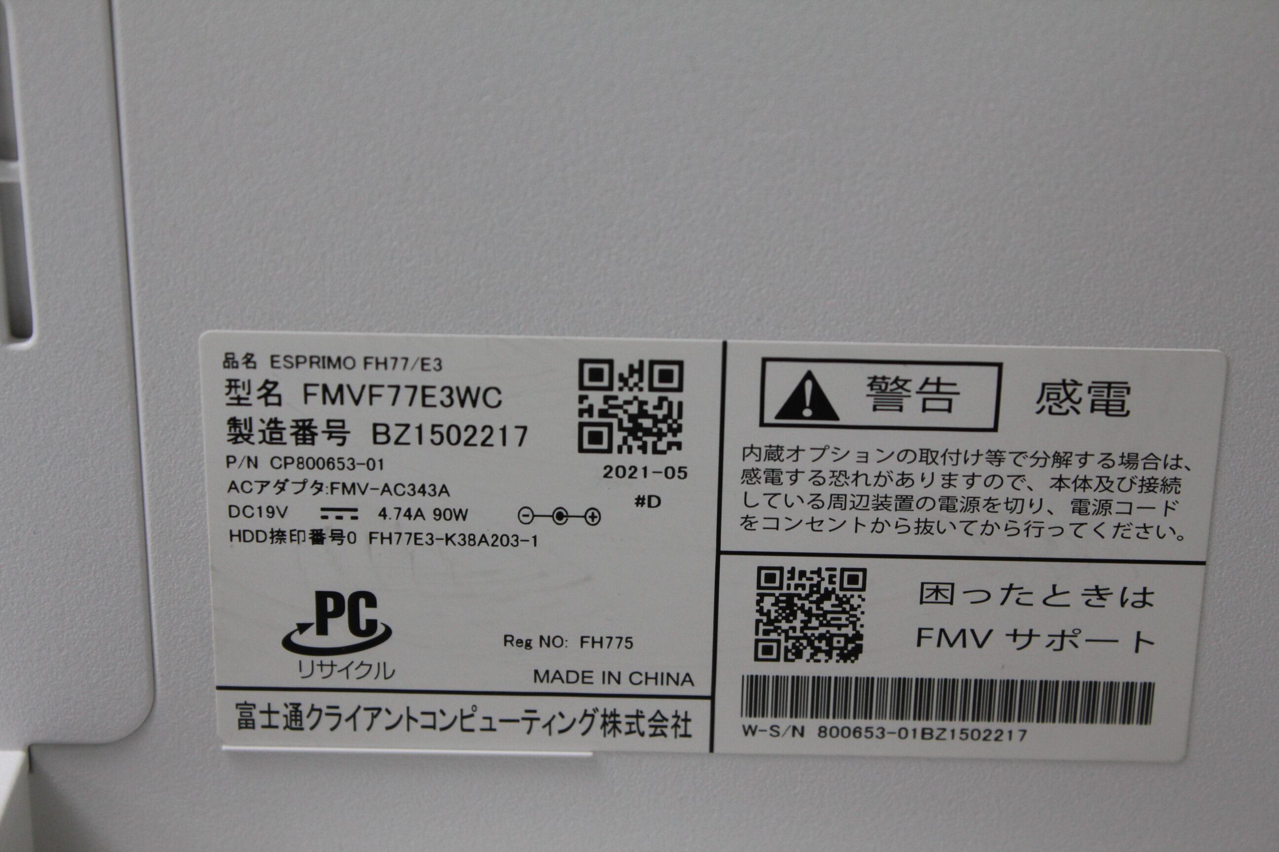 ・型番:FMVF77E3WC