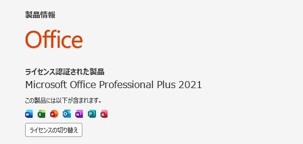 ・Office Professional Plus 2021 ライセンス認証済み(プロダクトキーなどは付属しません)