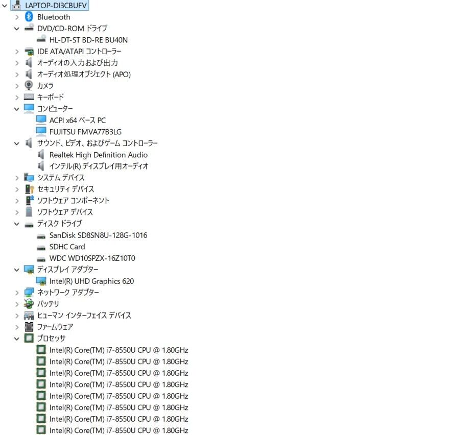 ・CPU:Intel Core i7-8550U 1.80GHz(2.00GHz)