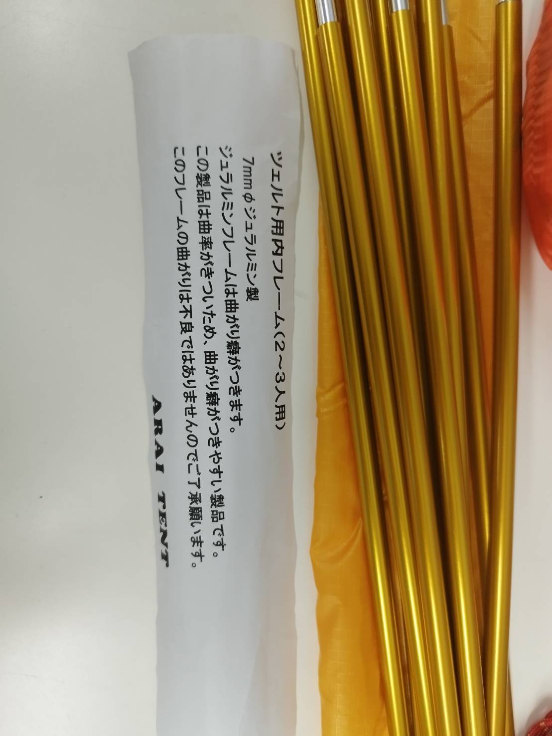 本体、張縄、収納袋、フレーム(他社製品)(画像1枚目に写っているもの)