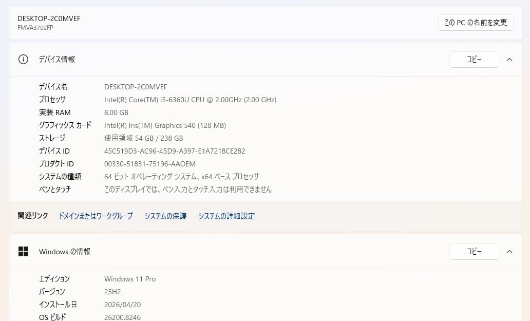 ・OS:Windows11 Pro/25H2(ライセンス認証・Windows update済)