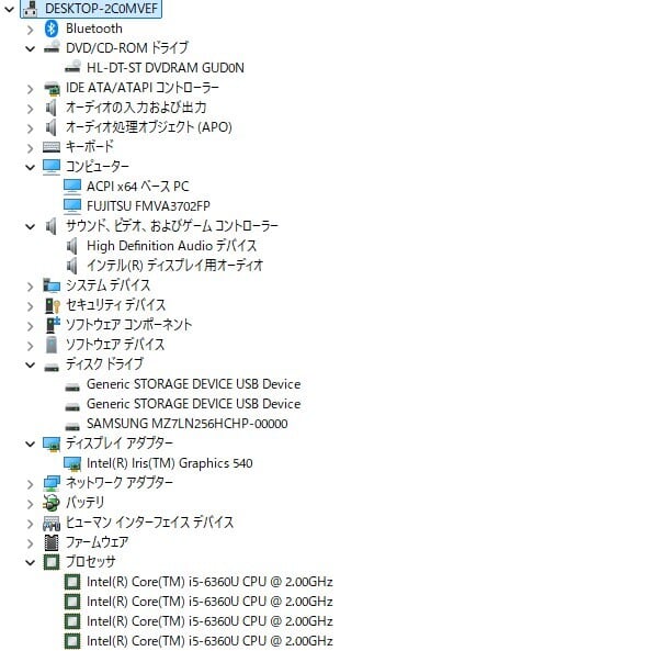 ・CPU:Intel Core i5-6360U 2.00GHz(2.00GHz)