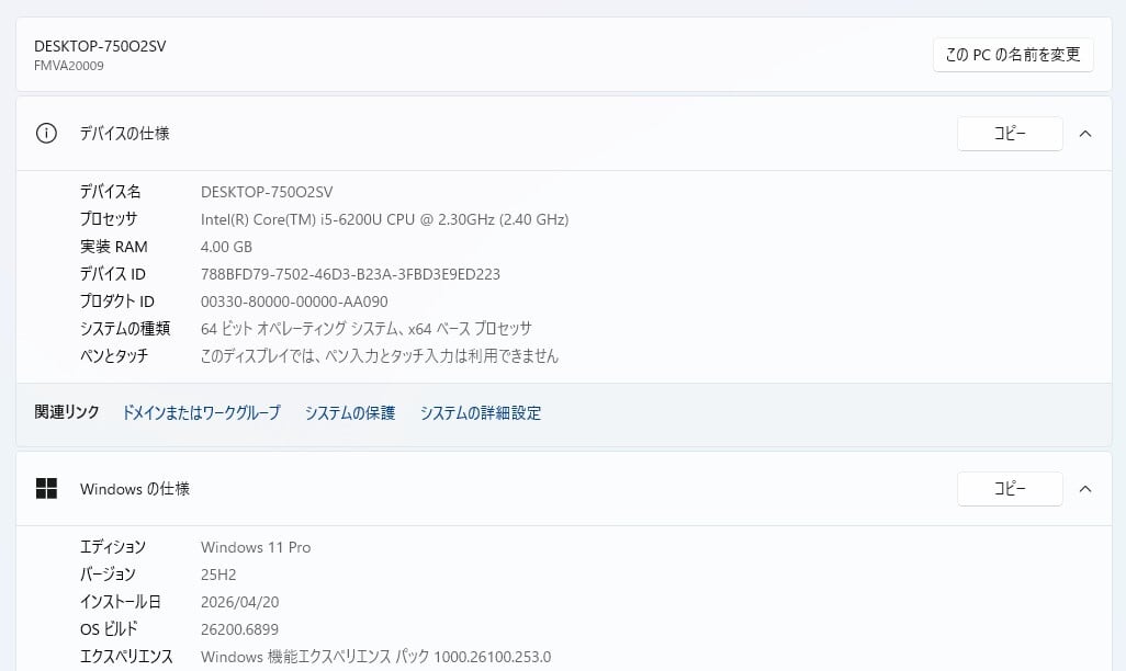 ・OS:Windows11 Pro/25H2(ライセンス認証・Windows update済)