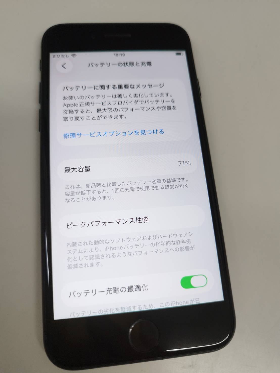 バッテリー最大容量71%(サービス/劣化表示あり)初期化・動作確認済み。