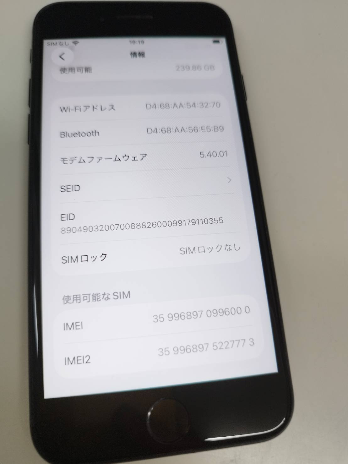 【SIMフリー】iPhone SE 第3世代/A2782/256GB/ミッドナイト〈MMYJ3J/A〉