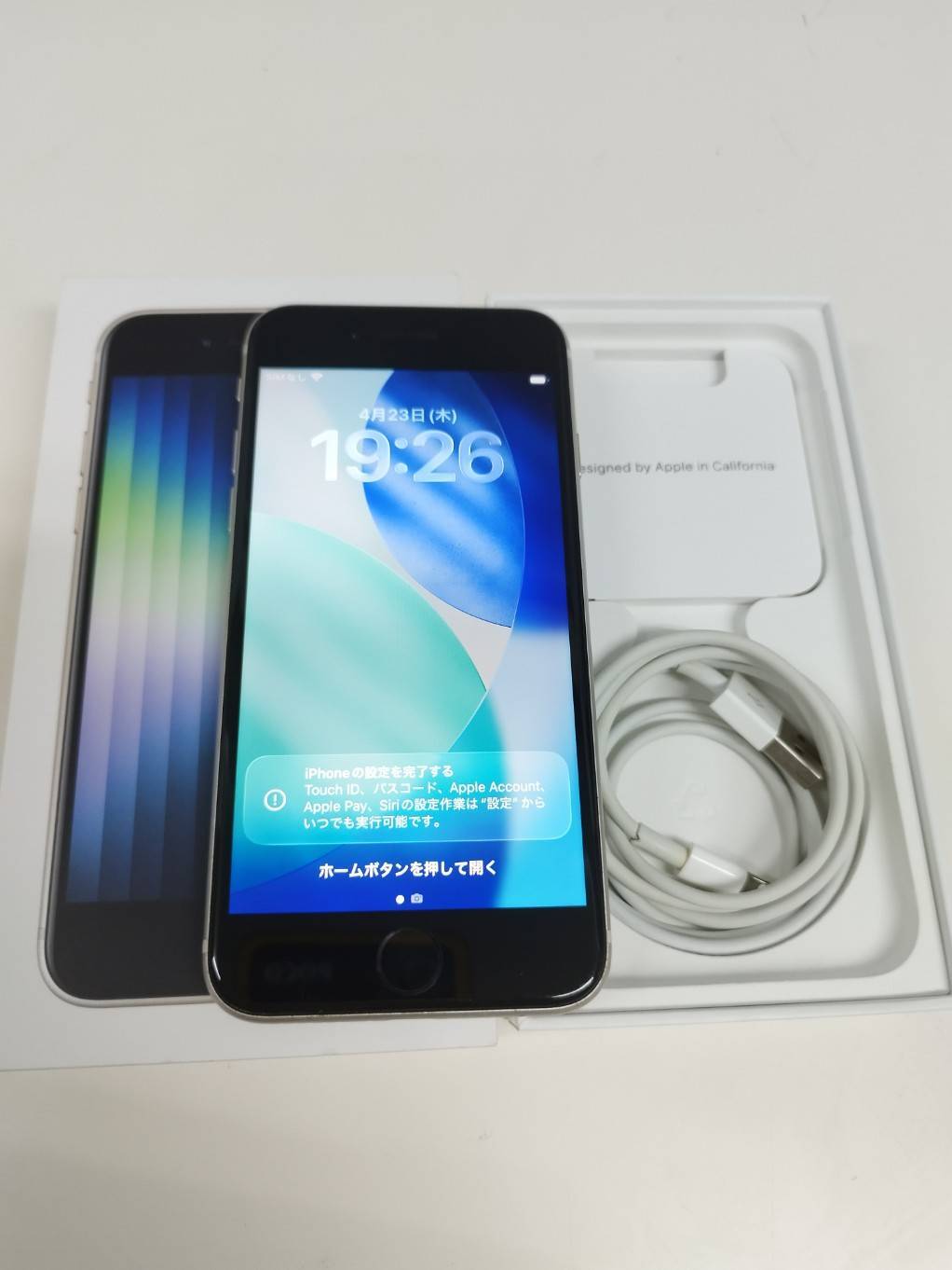 本体、Lightning to Type-Aケーブル、SIMピン、印刷物、外箱(画像1枚目に写っているも)