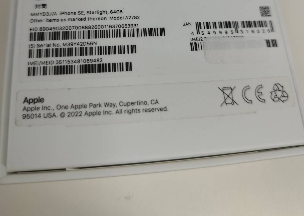 【良品】iPhone SE 第3世代/SIMフリー/A2782/64GB/スターライト〈MMYD3J/A〉
