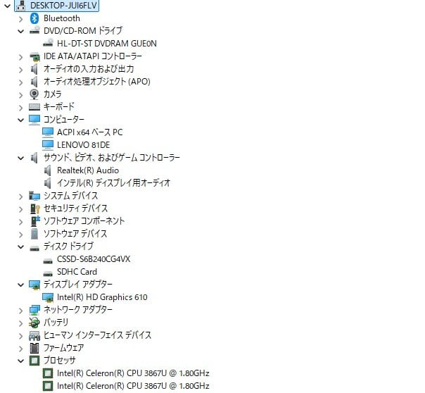 ・CPU:Intel Celeron 3867U 1.80GHz(1.80GHz)